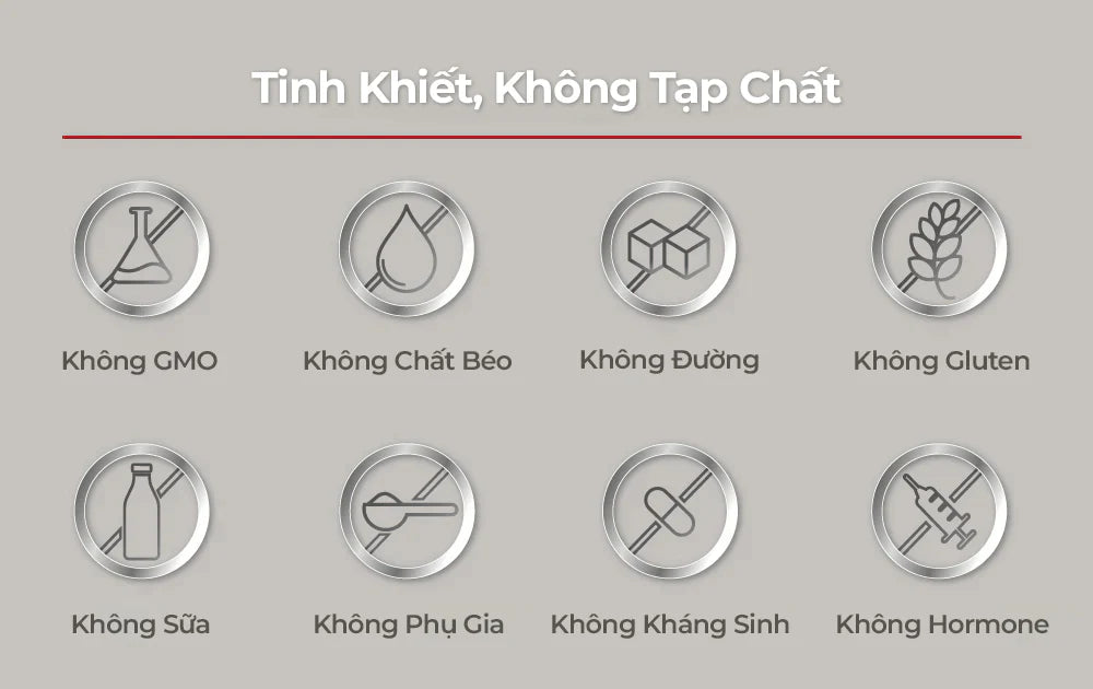 Collagen Hải Sinh AC-I hoàn toàn không chứa các phụ gia như chất độn, chất bảo quản, kháng sinh hay kim loại nặng, không chứa chất béo, đường, gluten, lactose hay sữa. AC-I không sử dụng nguyên liệu biến đổi gen (GMO), thành phần từ GMO hay các chất phụ gia nhân tạo, giúp bạn yên tâm tuyệt đối khi sử dụng.